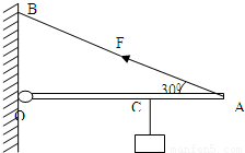 如圖所示,一輕質(zhì)杠桿OA可繞O點(diǎn)無(wú)摩擦轉(zhuǎn)動(dòng),A端用繩子系在豎直墻壁的B點(diǎn),在杠桿的C點(diǎn)懸掛一重為20N的物體,杠桿處于水平靜止?fàn)顟B(tài).已知OA長(zhǎng)為50cm,OC長(zhǎng)為30cm,∠OAB=30°.