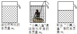 “五?一”期間,憲憲從上海世博會(huì)丹麥館帶回一個(gè)“小美人魚”工藝品,他想知道這個(gè)工藝品的密度,于是進(jìn)行了實(shí)驗(yàn).請(qǐng)你根據(jù)如圖所示的實(shí)驗(yàn)數(shù)據(jù)推算(溫馨提示:水的密度用ρ
