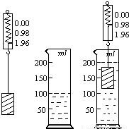 用彈簧秤、量筒做測定某種物塊和液體密度的實驗,如圖所示.(g=9.8N/kg,量筒的刻度單位為ml)求: