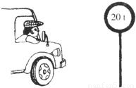 小陳是一名貨車司機(jī),有一次他拉一車貨物經(jīng)過一座橋,剛要上橋,他看了一下立在橋頭的限重標(biāo)志牌(如圖所示),便立即把車開過了橋.你知道小陳的汽車和所裝貨物的總重不會(huì)超過多少嗎?