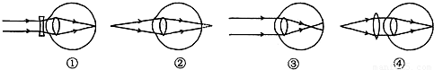 下列四幅圖,分別表示近視眼成像情況和矯正做法的是( )