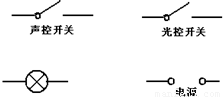 學(xué)校寢室樓道里,夜間只是偶爾有人經(jīng)過,電燈總是亮著就會(huì)浪費(fèi)電能.小明在學(xué)習(xí)了電學(xué)知識(shí)后想利用光控開關(guān)和聲控開關(guān)設(shè)計(jì)一個(gè)電路,滿足夜間有人經(jīng)過時(shí)燈亮,而白天有人經(jīng)過燈不亮,達(dá)到節(jié)約用電的目的.請(qǐng)你將圖15中的器材連接成符合題意的電路.