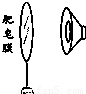 在探究人耳怎樣聽到聲音時,可以用肥皂膜模擬人耳的鼓膜.如圖所示,當喇叭發(fā)聲時,肥皂膜將( )