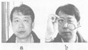 圖中a、b是同一人的兩幅照片,b圖中他拿的眼鏡( )