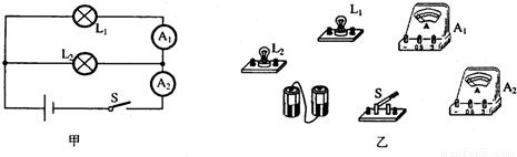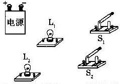如圖所示.現(xiàn)有一個(gè)電池組.兩個(gè)開關(guān)和兩盞電燈,請你連接好下面的實(shí)物電路圖,使S