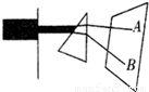 如圖,將一束太陽光投射到玻璃三棱鏡上,在棱鏡后側(cè)光屏上的AB范圍內(nèi)觀察到不同顏色的光,則( )