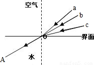 如圖所示,a、b、c是從空氣射向水中的三條光線,OA是折射光線,則OA的入射光線是( )