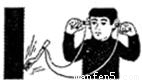 如圖所示,將一把金屬叉子拴在一根約lm長的線的中間把線的兩端分別纏繞在雙手的食指上,纏繞多圈,插入耳朵.然后讓叉子撞到堅硬的物體上,等它垂下把線拉直時,你就可以聽到敲鐘似的響聲.通過撞擊,金屬叉子
