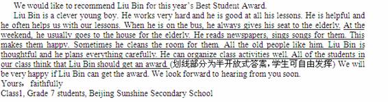 請(qǐng)根據(jù)要點(diǎn)寫一封推薦信, 推薦劉冰當(dāng)選本年度最佳學(xué)生。