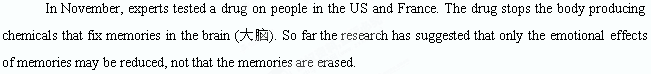 But those who are against the research say that changing memories is very dangerous because memories give us our identity (特質(zhì)). They also help us all avoid the mistakes of the past.