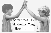 C. Both kids do high fives several times.