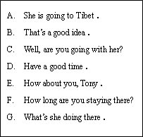 選擇句子,補(bǔ)全對(duì)話,其中有兩項(xiàng)是多余的。