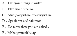 3.Example Three:One student put a vocabulary list on the wall of the bathroom.He learned a new word every day while brushing his teeth.Another student used the time to remember biology terms while practicing running.