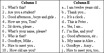 從Ⅱ欄中找出與Ⅰ欄相對(duì)應(yīng)的答語: