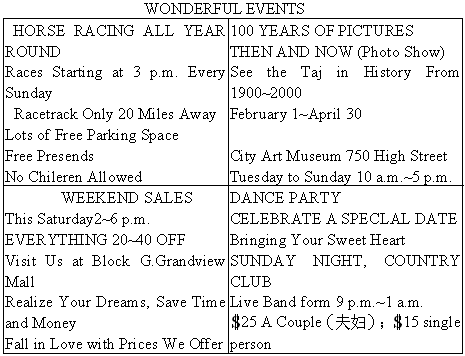 .Go to watch the horse race.(4) How much will Mr and Mrs Smith pay if they want to go to the dance party?