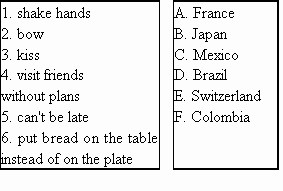 Almost every country has its own manners. Please match the following manners and their countries.
