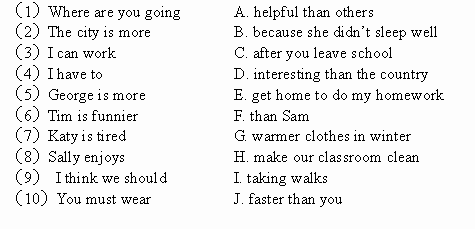 將Ⅰ、Ⅱ欄所給的選項連接起來組成完整的句子.