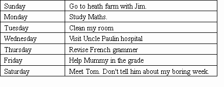 He __4__ his uncle Paul in hospital. On Thursday he __5__ French grammar. On Friday afternoon he __6__ his mother in the garden, on Saturday morning he __7__ Tom at Heathrow. He __8__ Tom about his boring day.