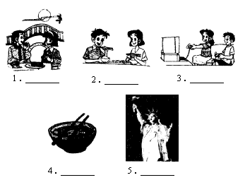 請(qǐng)仔細(xì)觀察圖1~4,并對(duì)圖5內(nèi)容展開(kāi)合理想像,然后用英語(yǔ)寫一篇短文。詞數(shù)60左右(不包括已給的單詞)。