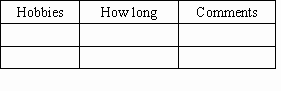 請(qǐng)先填表格,再根據(jù)表格中你的信息寫(xiě)一篇介紹你愛(ài)好的文章.