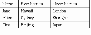 你的三個好朋友分別去過和沒去過下面的地方,請完成下文