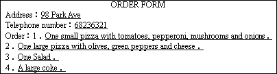 請根據(jù)定單,編寫邁克與比薩餅工作人員訂餐的對話。