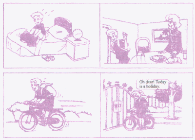 根據(jù)上圖提供的內(nèi)容,寫(xiě)一段不少于50詞的短文,人物自擬.要求語(yǔ)意連貫流暢,故事性強(qiáng).