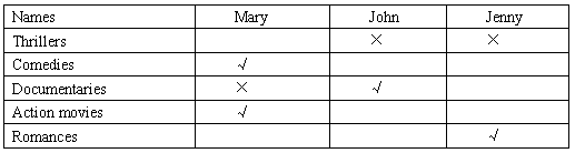 下面是向?qū)W生調(diào)查喜歡觀看電影類型的調(diào)查記錄表,請(qǐng)根據(jù)表格內(nèi)容寫一篇短文.