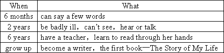 根據(jù)表格所提供的信息,介紹Helen Keller的成長經(jīng)歷。
