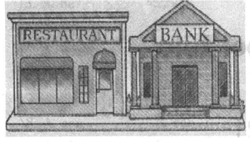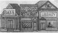 between, next to, opposite填空The restaurant is _______ the bank and the library.