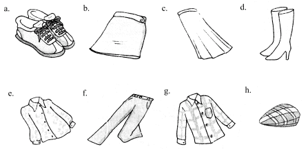 Sandy wants to be a fashion designer. She is trying to match different clothes. Read what she is thinking. Write the correct letters in the blanks.