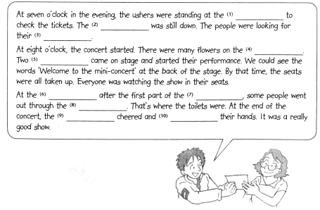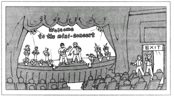 The mini-concert is over. Ricky enjoyed it very much. He is showing a photo that he took at the theatre to his mum. Complete what he says to his mum.