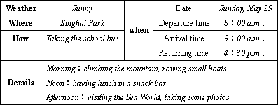 根據(jù)表格中的內(nèi)容,記述一次短途旅行。