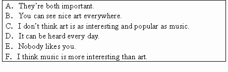Kate: I like music better than art. ____1____