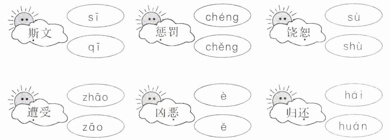 答案:斯文(sī√) 懲罰(chéng√) 饒?。╯hù√) 遭受(zāo√) 兇惡(è√) 歸還(huán√)