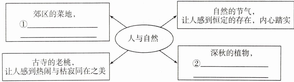 1. 作者在文中揭示了“人與自然”的關(guān)系,參照示例,對(duì)文章內(nèi)容進(jìn)行梳理。