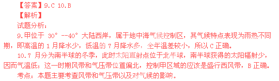 10.7月控制甲地主要的氣壓帶或風(fēng)帶是