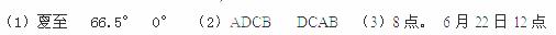 (1)圖示為 節(jié)氣,此時(shí),C地正午太陽(yáng)高度角為