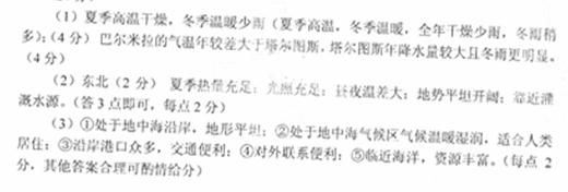 (3)請(qǐng)簡要分析該區(qū)域城鎮(zhèn)大多集中于西部沿海的主要區(qū)位因素。(8分)
