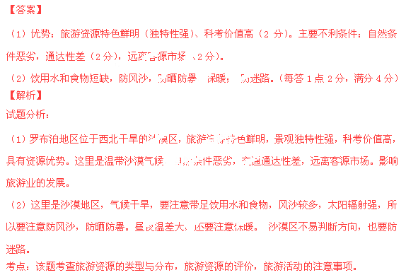 指出該地區(qū)旅游資源開發(fā)的優(yōu)勢(shì)及主要不利條件。