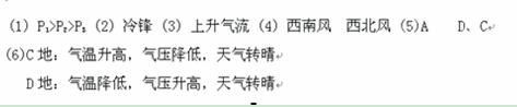 (5)A、B、C、D四地氣溫最高的是 ,能產(chǎn)生降水的是 。