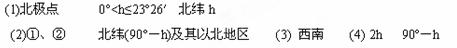 (1)①表示的地點是______,該地夏半年太陽高度h的范圍是______,這一天,太陽直射點的緯度是______。