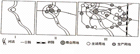 下圖是我國某城市發(fā)展過程中的三個階段,讀圖回答22~23題。