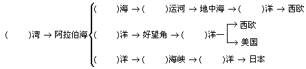 (3)完成西亞石油輸往西歐、日本、美國(guó)的海上運(yùn)輸路線