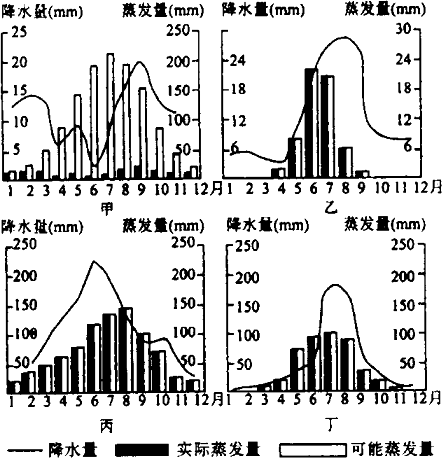 高溫期與多雨期不一致的是丁
