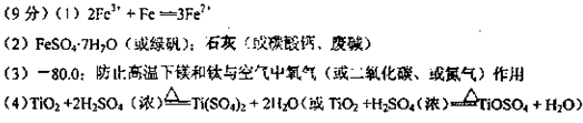 (4)TiO2是白色粉末,不溶于水,也不溶于酸,但能溶于氫氟酸和熱的濃硫酸中。請寫出TiO2與硫酸反應(yīng)的方程式