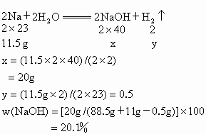 將11.5g金屬鈉投入88.5g水中,若不考慮水的蒸發(fā)則反應(yīng)所得溶液中溶質(zhì)的質(zhì)量分?jǐn)?shù)是多少?