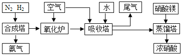 (6分)工業(yè)合成氨與制備硝酸一般可連續(xù)生產(chǎn),流程如下:![]()