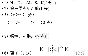 (6)D、E元素形成的化合物為 晶體,電子式為 。