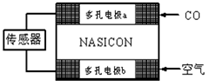 | A.工作時(shí)電極b作正極,O2-由電極b流經(jīng)傳感器流向電極a |